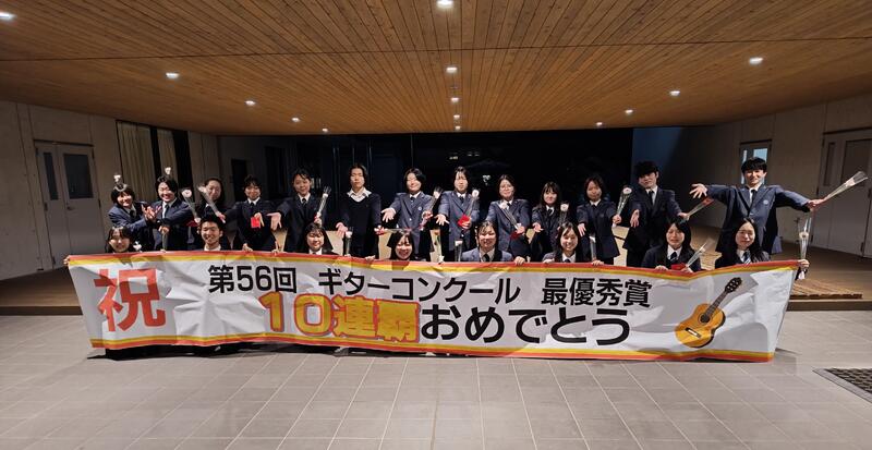 10月19日(日)に神奈川県藤沢市の藤沢市民会館にて行われた第56回全日本ギターコンクール合奏部門学校の部において本校ギター部が最優秀賞を受賞しました。大河原商業高校ギター部より引き継ぎ10年連続30回目の最優秀賞受賞となりました。応援ありがとうございました。